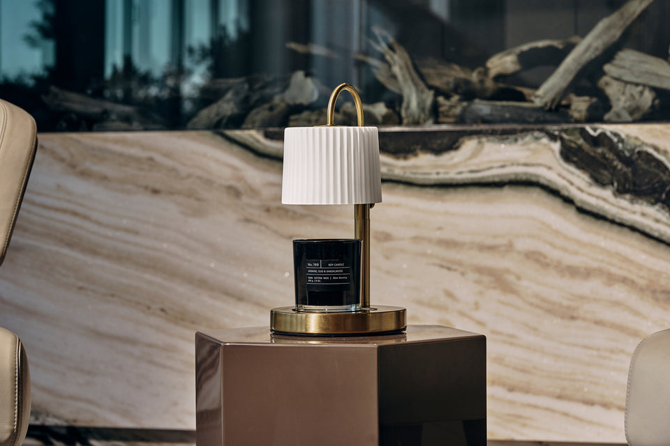 Our lamp utilizes a low-wattage halogen bulb that gently warms and melts the candle from the top down. This is different than “traditional” candle warmers that melt the candle from the bottom. The result is the candle starts melting and releasing fragrance in a matter of minutes.